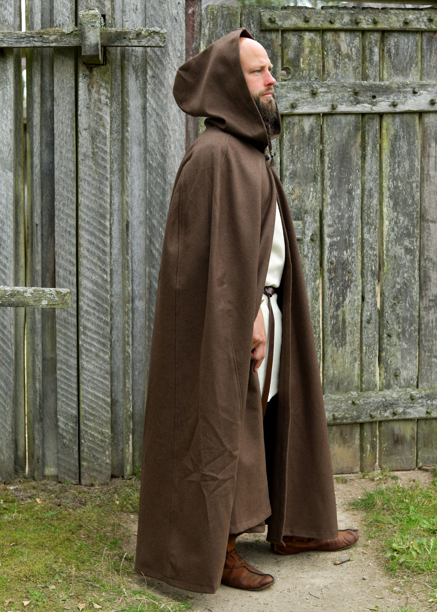 Cappa medievale con cappuccio in cotone modello Aaron, colore grigio