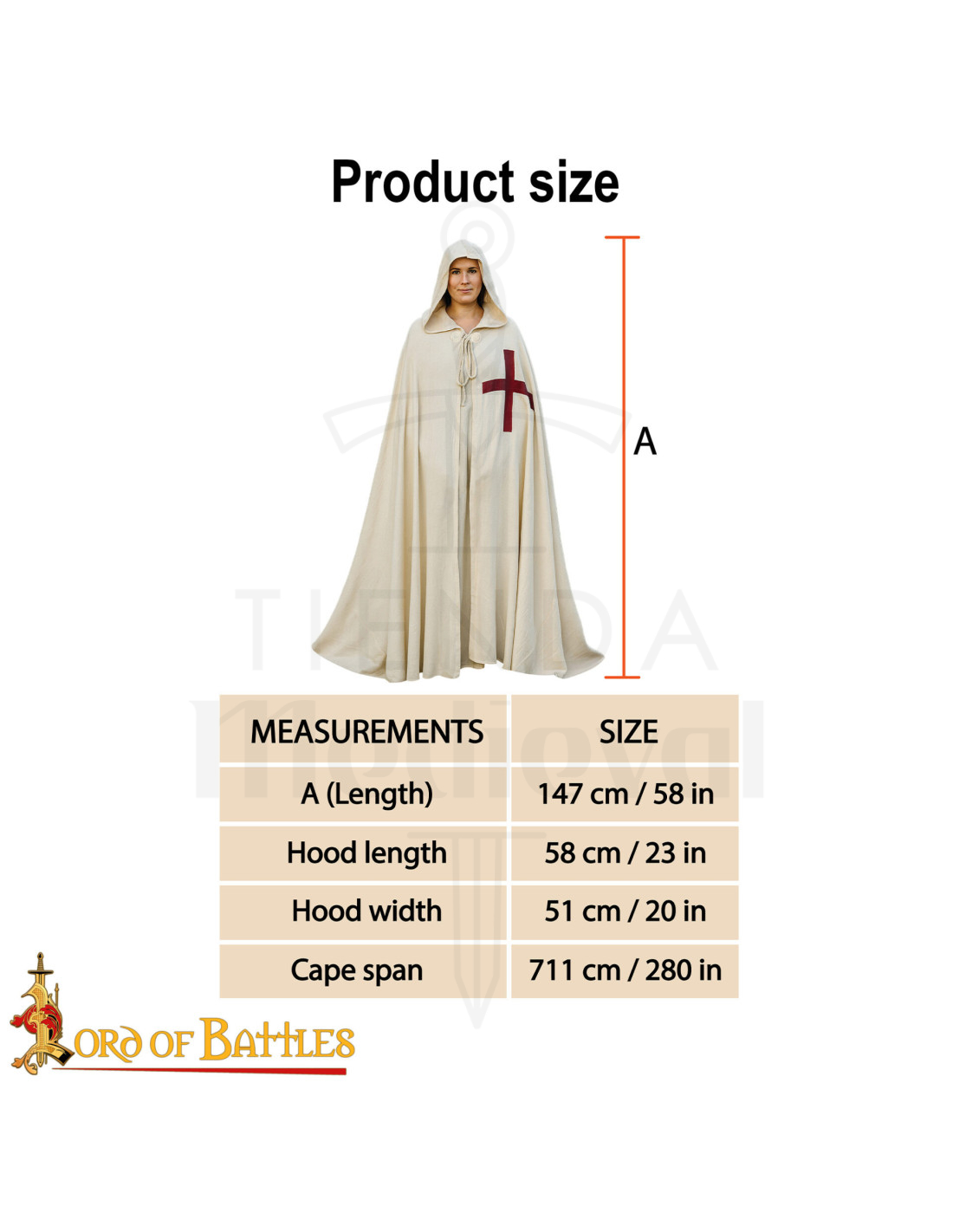 Coloro che cercano di acquistare il Mantello medievale Crociato Teutonico XIII secolo, colore naturale troveranno qui una replica curata, pronta da indossare e competere in realismo.