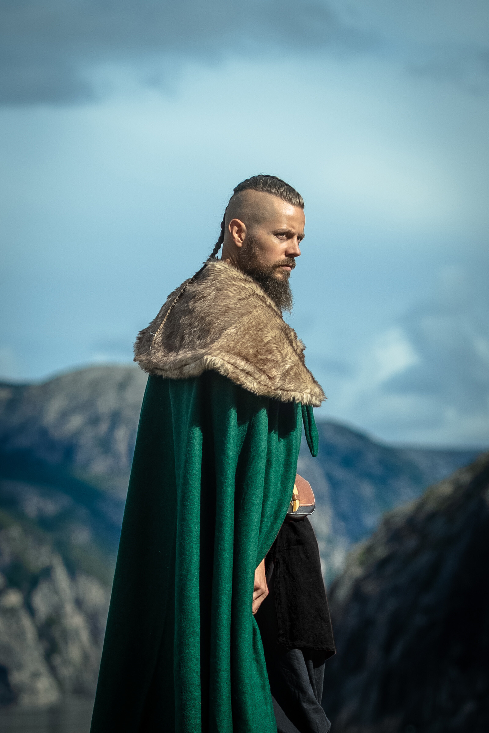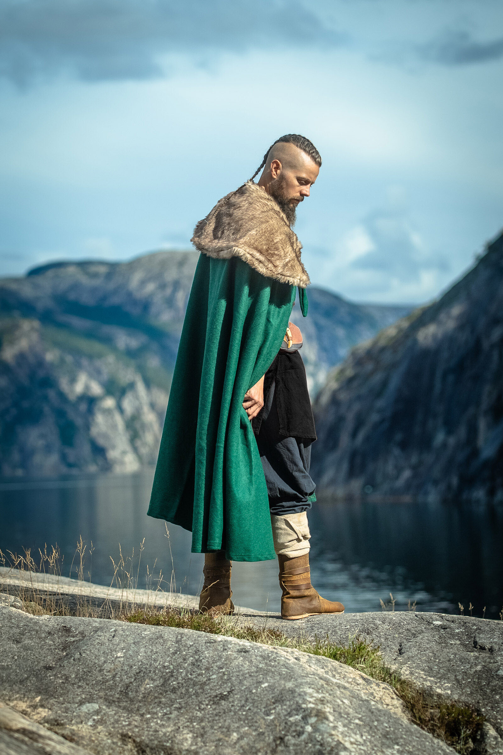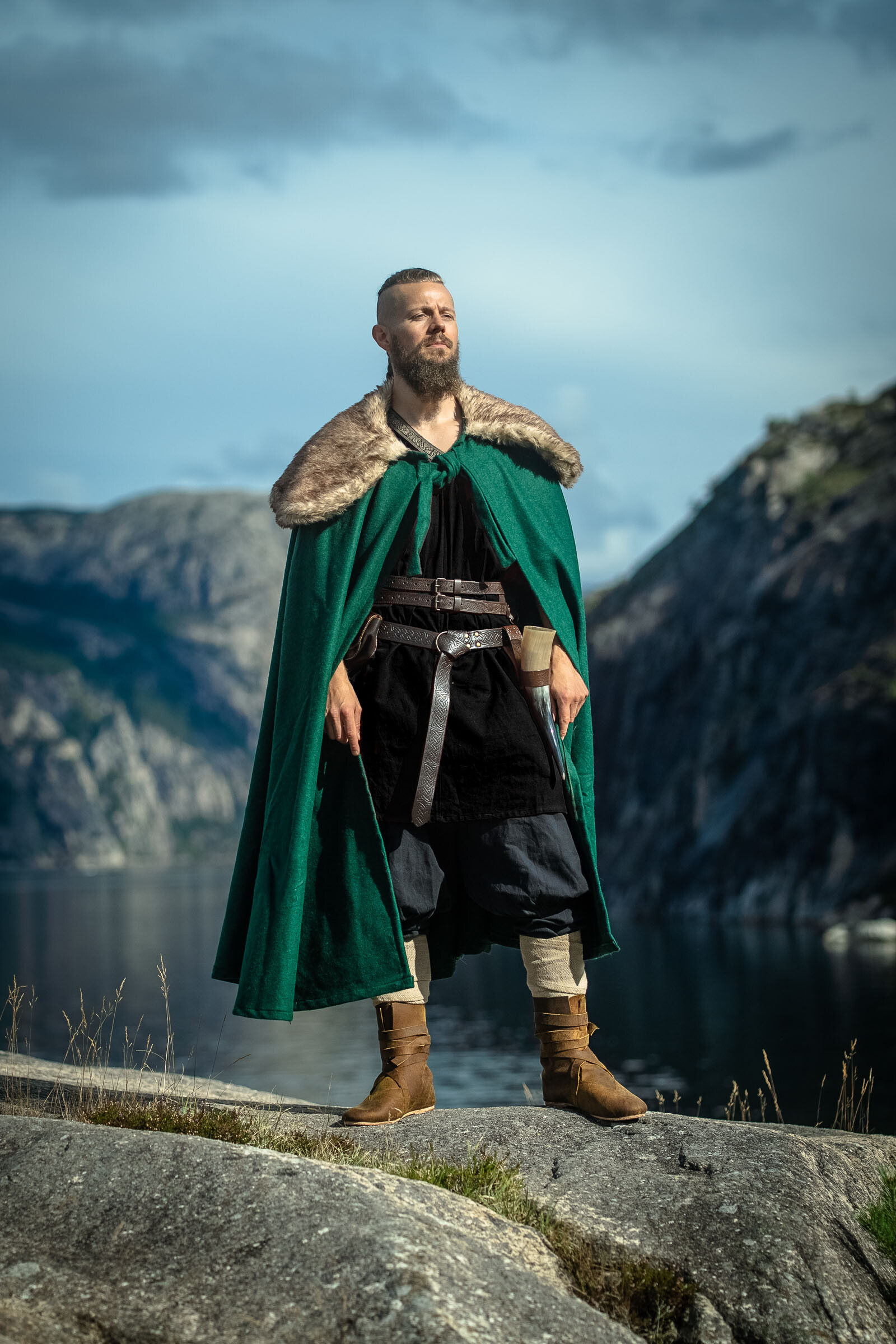 Mantella medievale in lana nera modello Bron