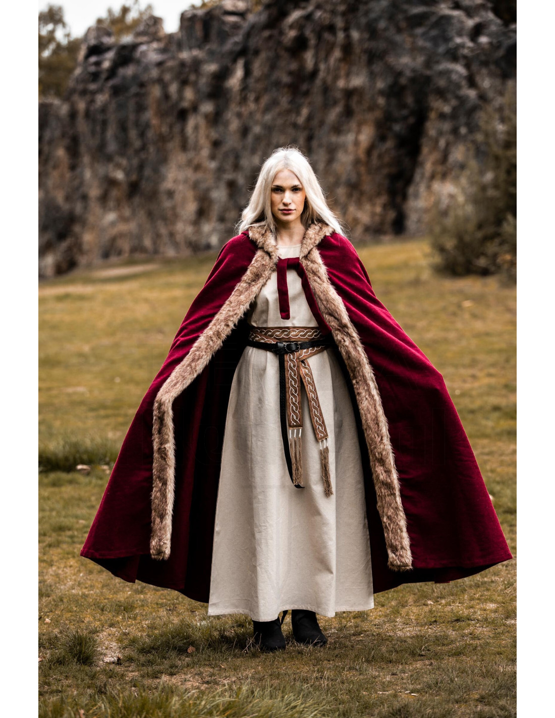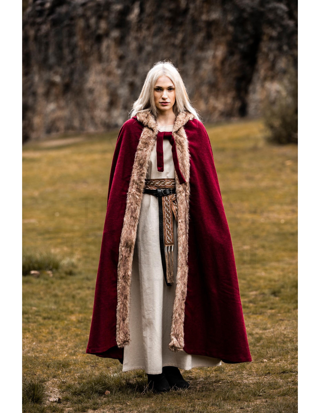 Se cerchi di acquistare Capa vichinga modello Fjell con pelliccia sintetica, rossa, la troverai pensata per coloro che apprezzano presenza e funzionalità. Il design offre una copertura generosa che avvolge senza limitare, ideale per mantenerti comodo in giornate fredde o in caso di piogge leggere, senza rinunciare a un aspetto impeccabile in fiere, eventi a tema o uscite informali.