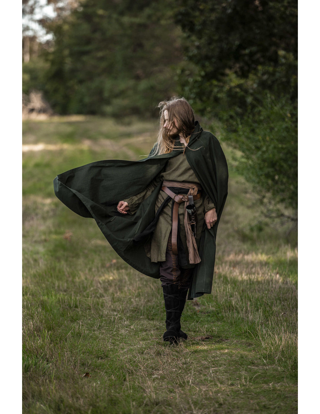 Ispirata ai pezzi che hanno caratterizzato la vita quotidiana nel Medioevo, questa cappa combina tradizione e funzionalità, connettendoti a un'eredità estetica senza risultare caricata. È perfetta per chi apprezza il bilanciamento tra autenticità visiva e uso contemporaneo.