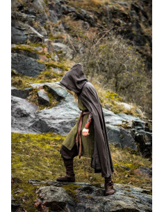Mantella medievale in lana marrone con cappuccio, modello Theresa