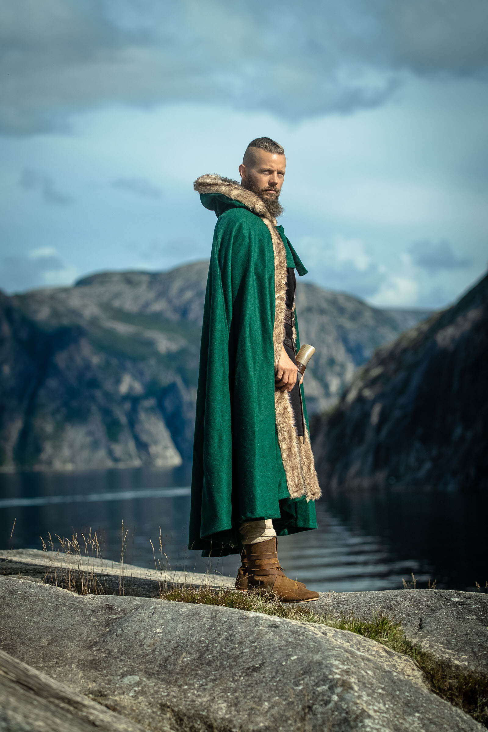 Lungo mantello medievale modello Boil, verde 131 cm.