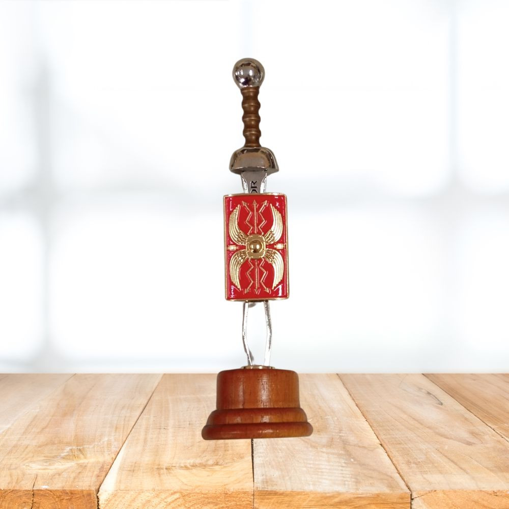 L'apriscatole è progettato con la forma della leggendaria spada Gladius romana, un'arma che è stata simbolo del potere militare dell'Impero Romano. Questo dettaglio non è solo pratico per aprire i tuoi documenti con stile, ma rende anche omaggio a una delle civiltà più influenti della storia.