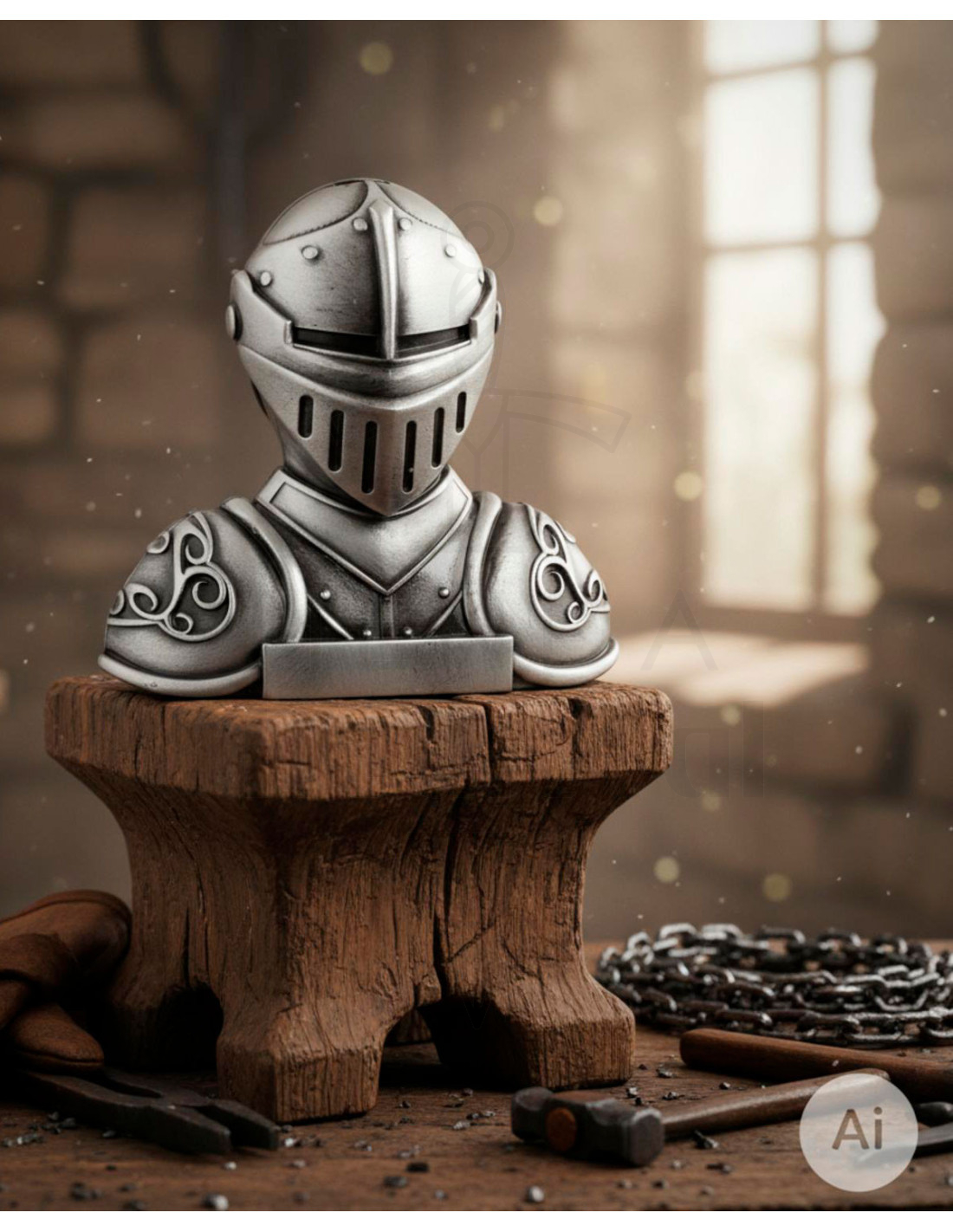 Il pacchetto include anche un supporto a forma di casco medievale, progettato con una finitura argentata lucida e dettagli in rilievo che evocano l'armatura di un cavaliere. Questo supporto non solo offre organizzazione e praticità, ma aggiunge anche un tocco decorativo con personalità alla tua scrivania o libreria. La sua base stabile garantisce stabilità e resistenza nell'uso quotidiano. Con la qualità garantita di Tole10 Imperial, questo set è ideale sia per gli appassionati di storia e cultura medievale sia per chi desidera un oggetto funzionale con un design singolare.