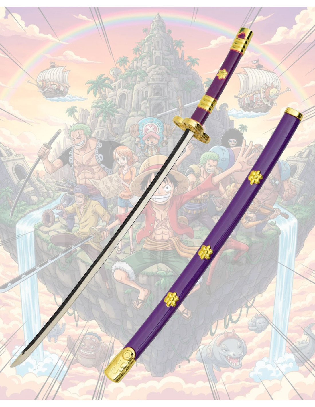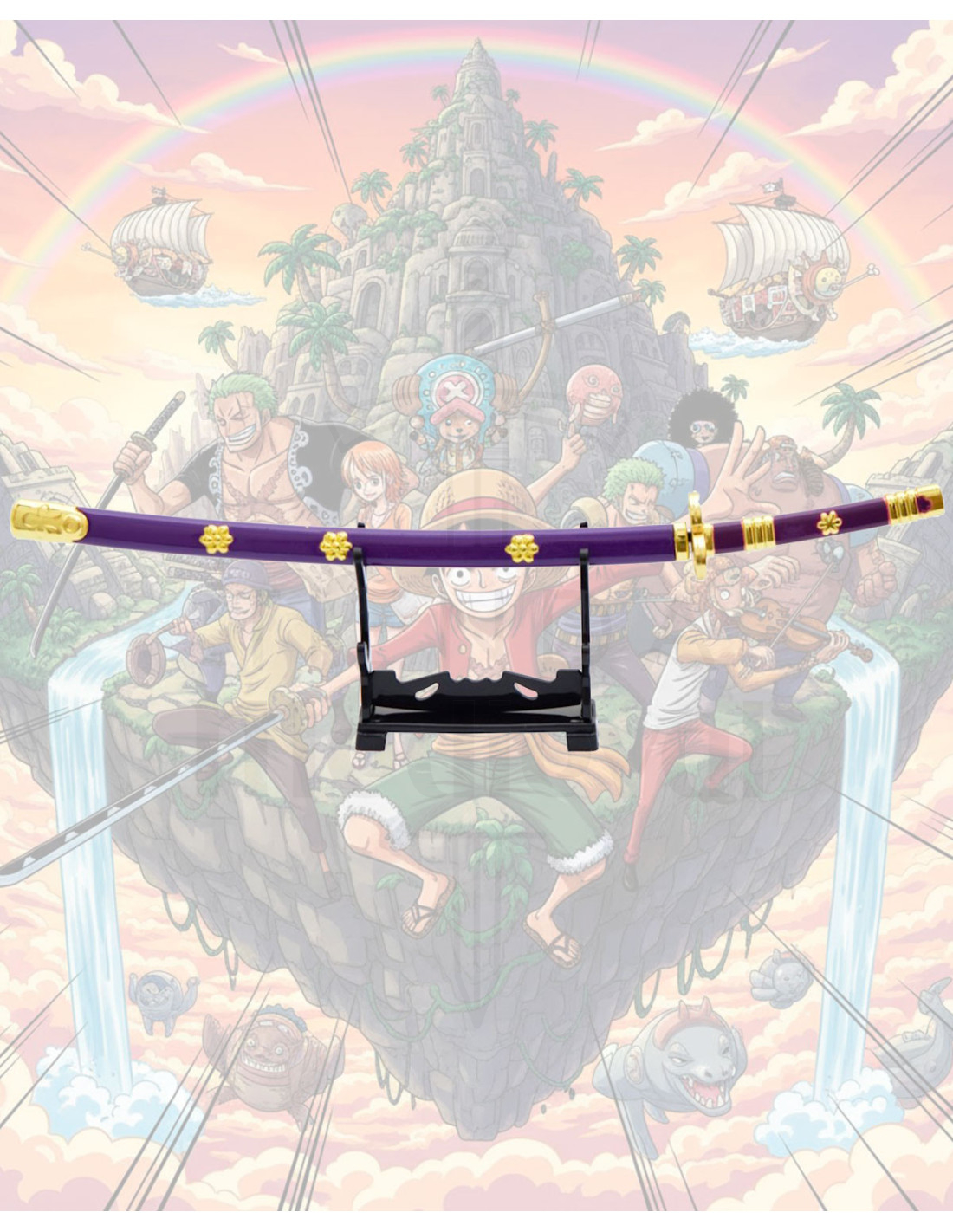 Questo pezzo è ispirato alla spada Enma di Zoro, un'icona all'interno dell'universo di One Piece, conosciuta per la sua importanza nella storia del personaggio e il suo simbolismo tra i fan della serie. Quel legame con Zoro rende la replica un oggetto con carico narrativo, che si connette con la passione per la saga.