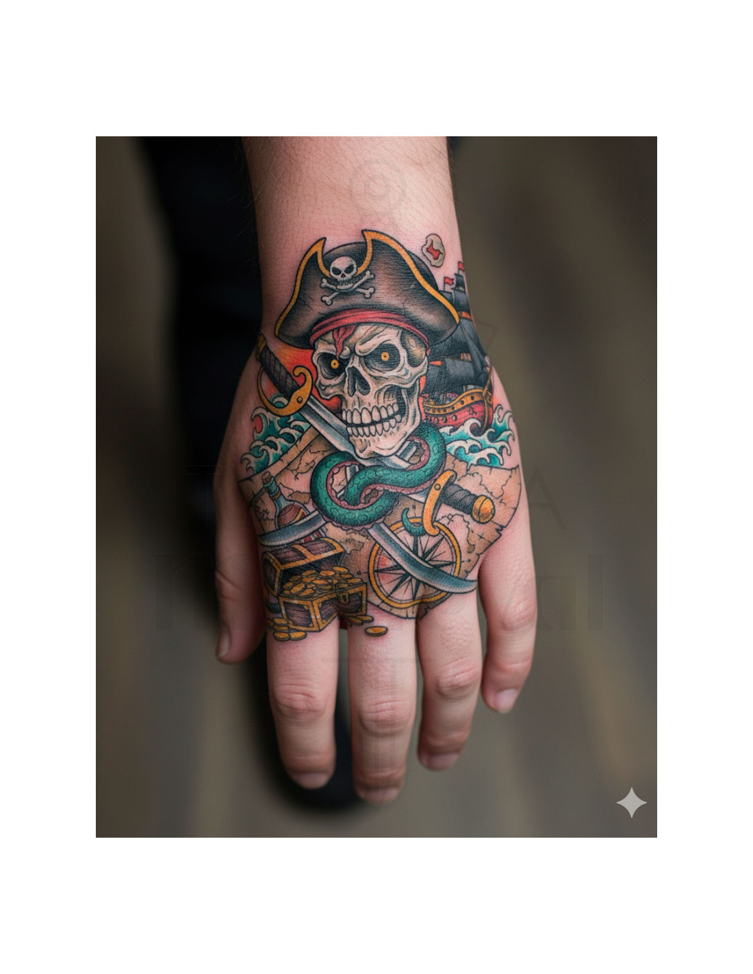 Inspirato dall’universo pirata, ricco di colori e dettagli accattivanti, questo tatuaggio ti trasporterà in mari di avventura senza permanenza. Che sia per una festa, un evento a tema o semplicemente per sfoggiare qualcosa di originale, acquistare questo tatuaggio temporaneo garantisce qualità, durata e divertimento. Osare di navigare con stile senza compromettere la tua pelle!