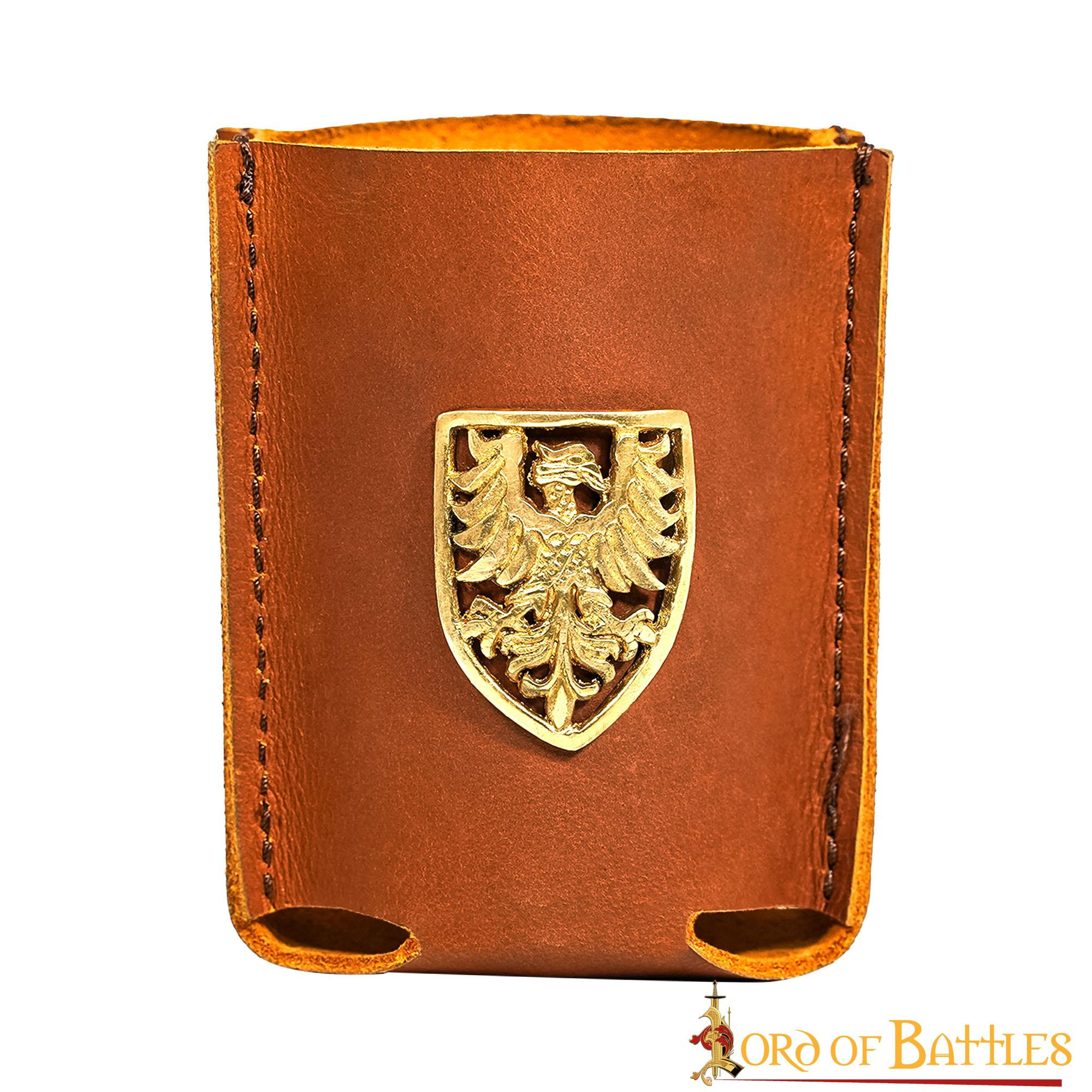 Il motivo dell'Aquila araldica, saldamente fissato sul frontale, è realizzato in puro ottone, che dona un tocco di storicità ed eleganza al prodotto. Inoltre, il design di questo porta lattine è studiato per mimetizzare la lattina di birra, trasformandola in una robusta custodia in pelle.