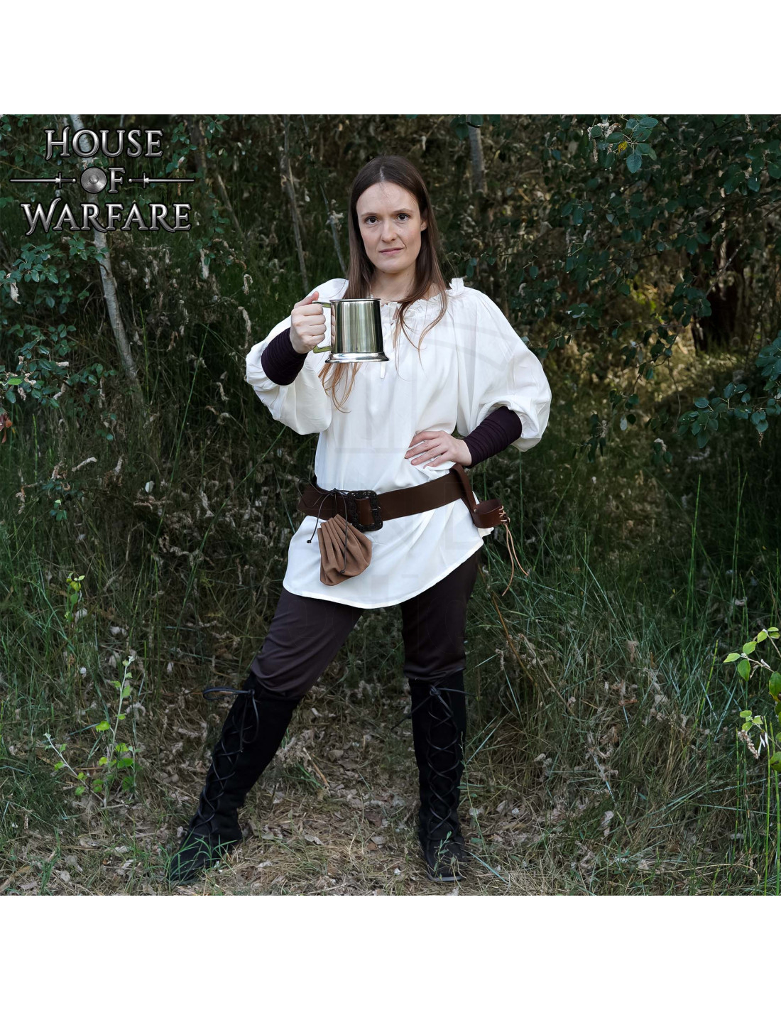 Progettato pensando all'uso reale, la sua forma robusta e il manico ergonomico facilitano la presa anche tra risate e movimenti, rendendolo ideale per fiere medievali, serate a tema taverna o incontri LARP. Il materiale resistente evita preoccupazioni per la ruggine, e la sua manutenzione semplice consente di farlo brillare rapidamente dopo ogni celebrazione, senza necessità di cure complicate.