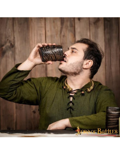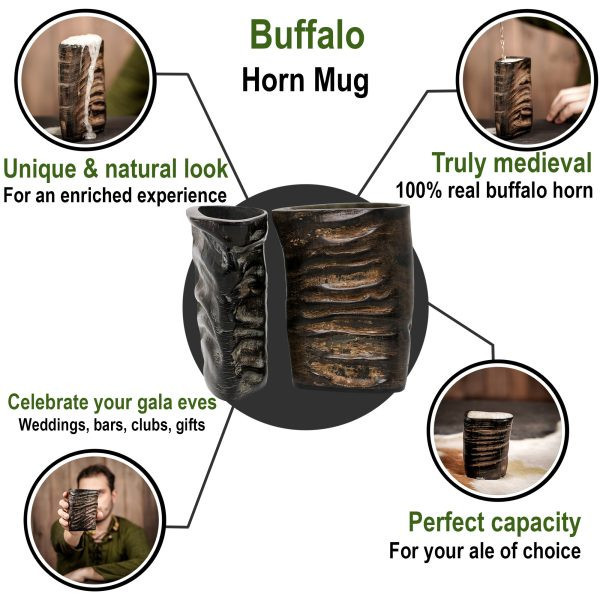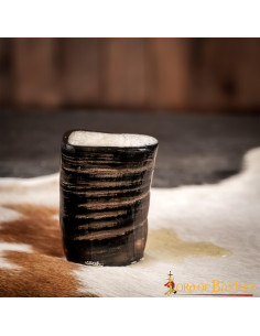 Il set di 2 bicchierini in corno vichingo è l'aggiunta perfetta per coloro che desiderano immergersi nell'esperienza medievale. Ogni bicchiere è realizzato a mano con corno di bufalo di provenienza etica, che gli conferisce un tocco autentico e unico.