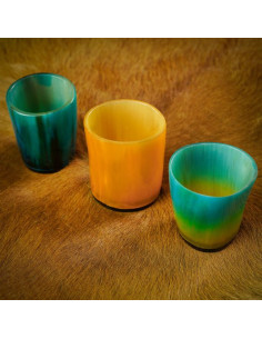 Set di 3 bicchierini colorati in corno di bue