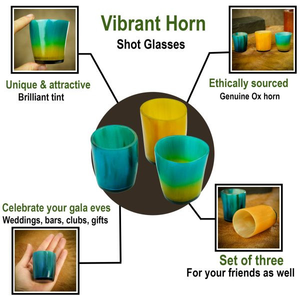 Questo set di 3 bicchierini è semplicemente affascinante. Sono realizzati a mano da corno bovino completamente GENUINO e di origine etica, che li rende unici nel loro genere. Ogni bicchiere ha una capacità totale di circa 100 ml, ideale per gustare un piccolo sorso del tuo spirito preferito.