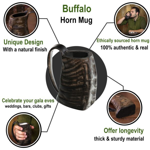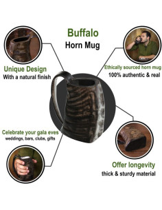 Il clou di questa brocca è il suo corno autentico, che le conferisce un tocco unico e speciale. Il corno è meticolosamente realizzato a mano in vero corno di bufalo e dotato di una finitura lucida naturale, che gli conferisce un aspetto elegante e sofisticato.