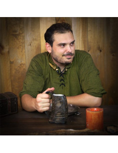 Non accontentarti di bicchieri deboli e ordinari, osa vivere un'esperienza autentica con il nostro boccale di birra medievale con vero corno. Ideale per rievocazioni storiche ed eventi a tema, ti riporterà indietro nel tempo e ti farà sentire un vero eroe medievale.