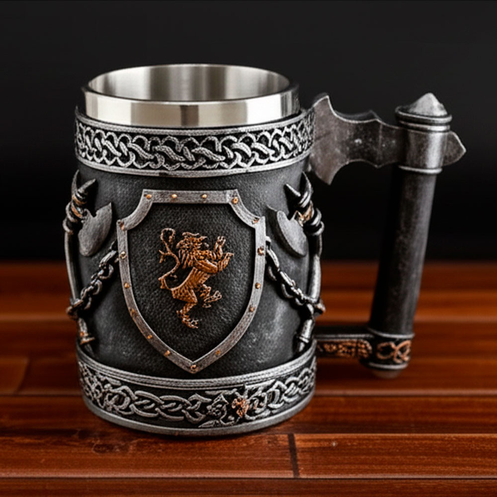 Ideale per gli appassionati di storia e decorazione che cercano un prodotto unico e accattivante, questa tazza in resina di stile medievale ornamentale con design di asce e scudi ti garantisce un'esperienza visiva e funzionale memorabile. Acquista ora e dona quel tocco epico ai tuoi incontri o alle tue collezioni.