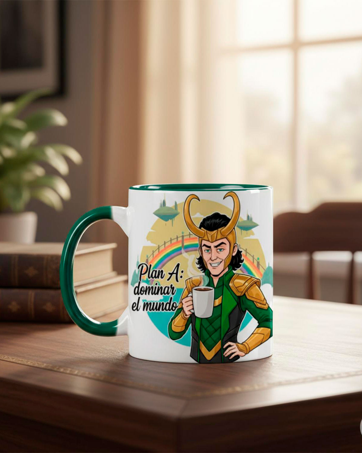 Inizia le tue mattine con un sorriso e un tocco di umorismo con questa tazza in ceramica ispirata a Loki, il dio dell'inganno Marvel. Con il suo design divertente in due parti, che dice “Piano A: dominare il mondo. Piano B: caffè,” è perfetta per gli appassionati di storie di supereroi e personaggi carismatici. La stampa totale a 360 gradi ti permette di personalizzarla con la tua foto, frase o disegno preferito, coprendo quasi tutta la superficie per sorprendere ad ogni uso.