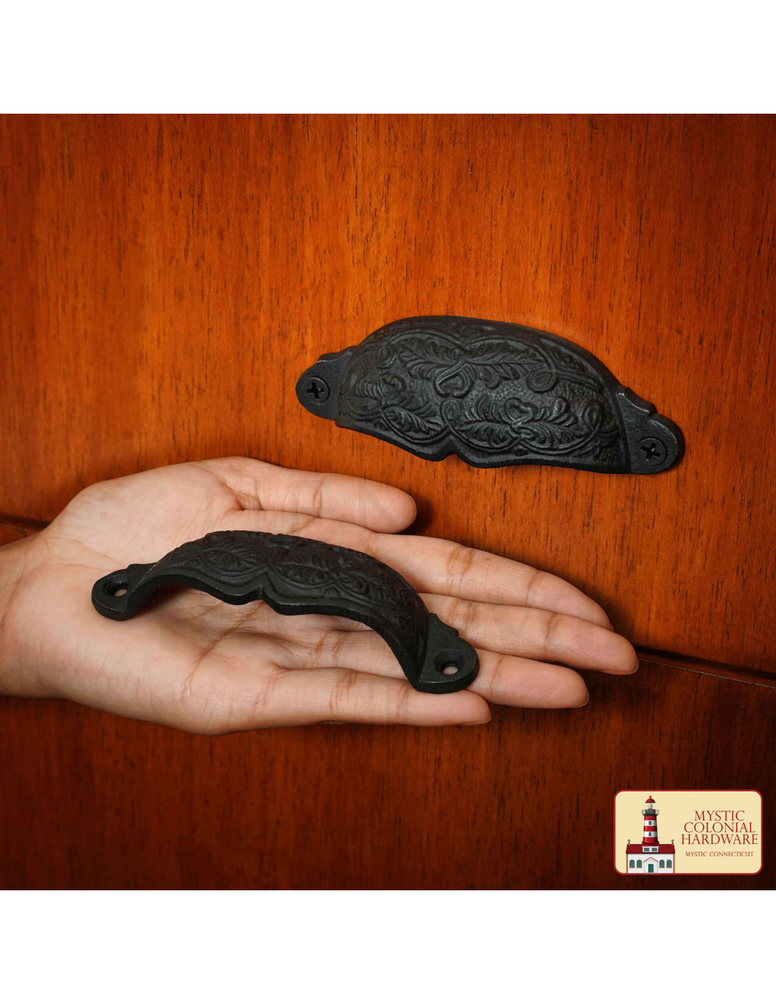 Progettata per chi apprezza il tatto e la durabilità, la ghisa offre una sensazione robusta che si avverte ogni volta che tiri il cassetto, mentre la finitura scura protegge la superficie dai segni quotidiani, mantenendo il suo carattere nell’uso. La forma a coppa consente di aprire con una sola mano, migliorando l’ergonomia di cassetti e porte, e i fissaggi laterali inclusi facilitano un’installazione rapida e sicura su legno.