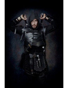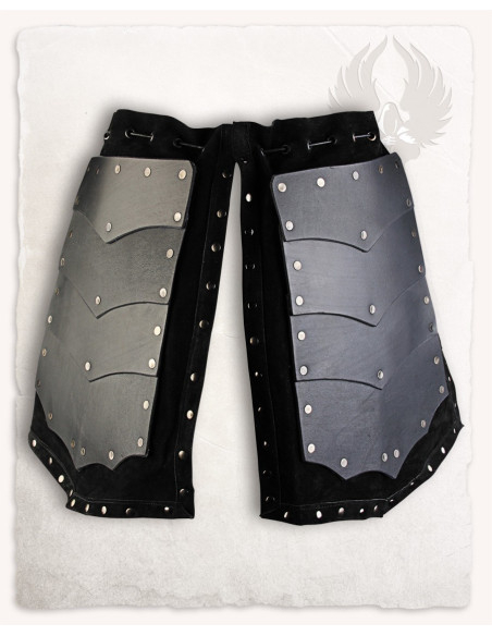 La chiusura mediante lacci passati per anelli metallici consente di regolare le fasce secondo la tua silhouette con precisione, garantendo che rimangano ferme in vita o sui fianchi senza risultare scomode. Grazie al suo design asimmetrico e diviso in due pezzi, ogni coscia riceve una protezione localizzata e flessibile, ideale per ricreazioni, combattimenti scenici o abbigliamenti con carattere.