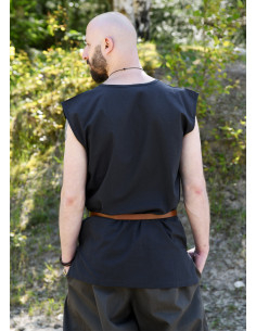 Vivi la combinazione perfetta di storia e comfort con la Tunica Medievale senza Maniche modello Clement in un elegante tono blu scuro. Questa tunica, realizzata in un leggero tessuto di cotone, è ideale per le tue attività estive, offrendo freschezza e stile allo stesso tempo.