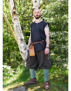 Il design semplice di questa tunica è ispirato a reperti archeologici del medioevo antico e alto, riflettendo fedelmente la moda dell'epoca. La sua versatilità ti consente di indossarla sia come capo esterno che interno. Quando viene utilizzata come capo interno, protegge i tuoi vestiti esterni dal sudore, per cui è conosciuta anche come 'Leibhemd'. È particolarmente consigliata come indumento interno per abbigliamento in lana, evitando che la lana graffi e causi fastidio sulla pelle.