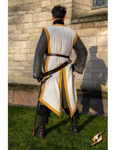 Tabardo medievale Clemente bicolore, bianco avorio - giallo grifone