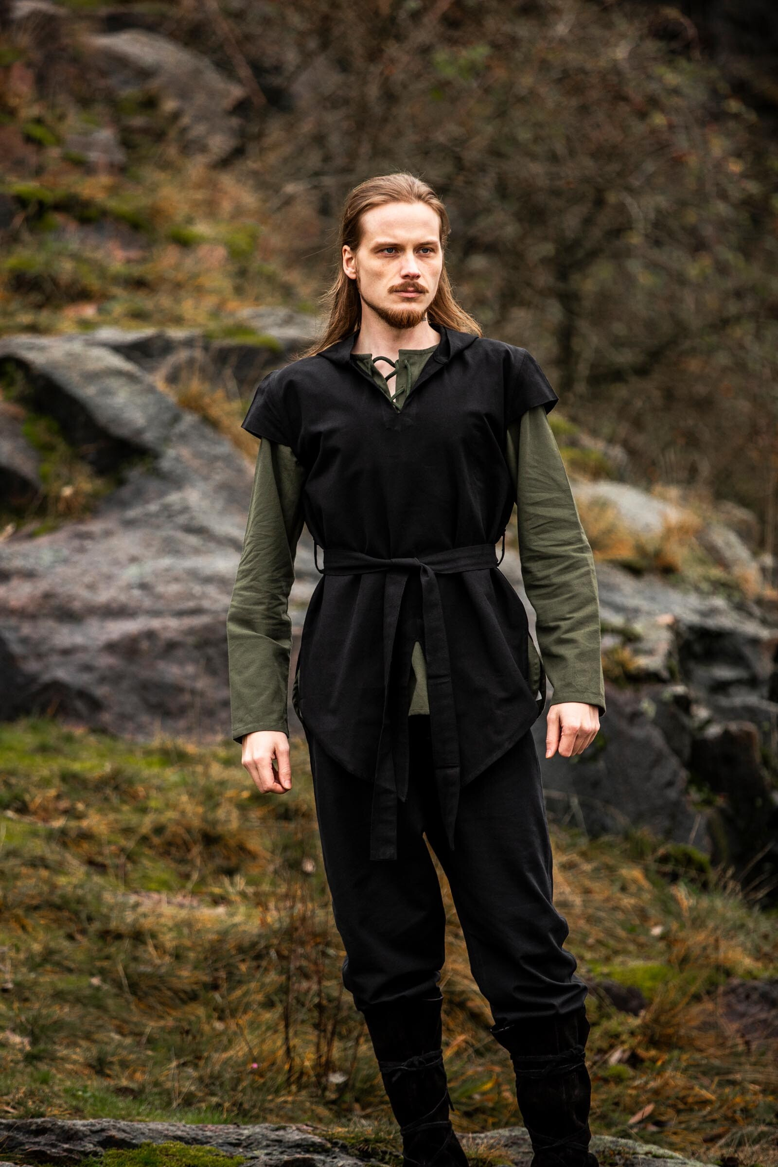 Tunika medievale corta in cotone modello Holgar, colore nero