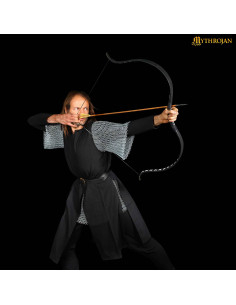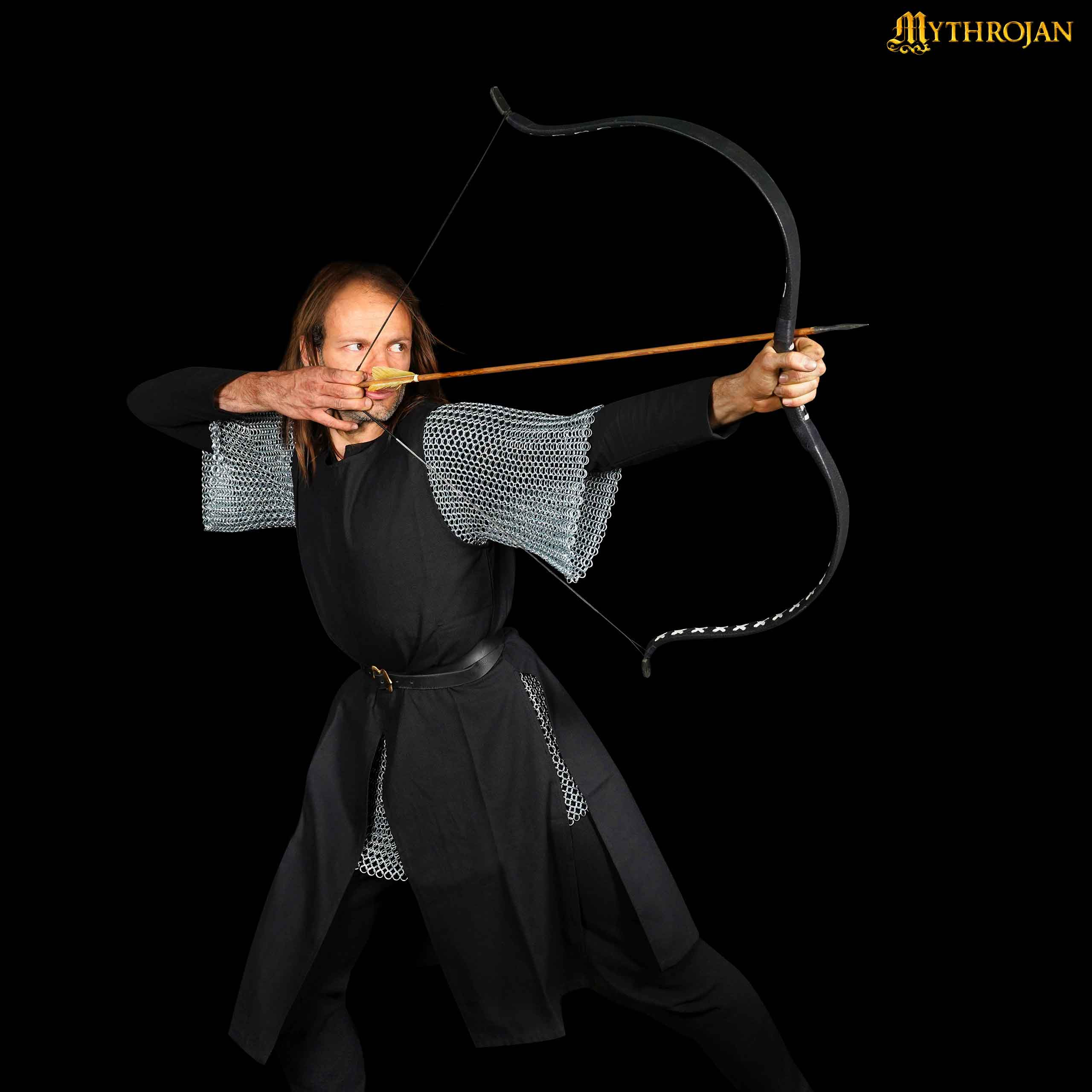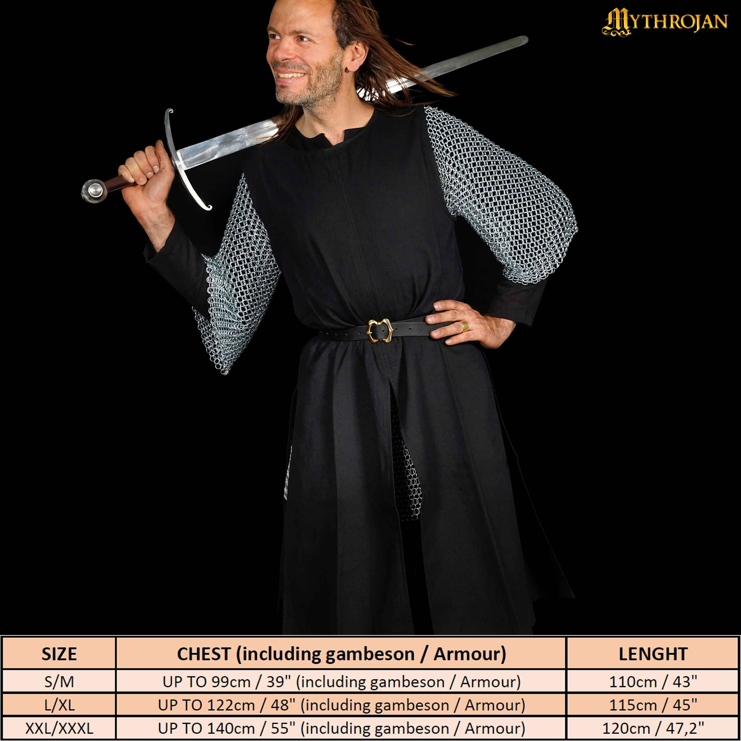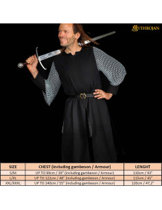 Tunica vichinga in cotone a manica lunga con collo ricamato, colore nero
