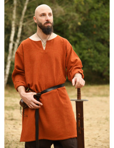 Tunica lunga vichinga in lana, colore arancione