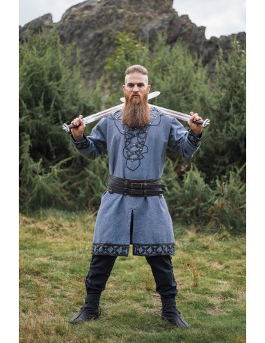 Scopri un capo che combina storia, sostenibilità e design curato in ogni dettaglio. Ispirata all'abbigliamento tradizionale della cultura vichinga e anglosassone, questa tunica è un omaggio all'equilibrio tra funzionalità ed eleganza. Realizzata con lana riciclata al 100% ad alta densità, garantisce resistenza e calore, rendendola una scelta ideale per sfide all'aperto o eventi come LARP, SCA e ricreazioni medievali. Inoltre, optare per questo materiale riflette un impegno per l'ambiente senza rinunciare all'autenticità storica.