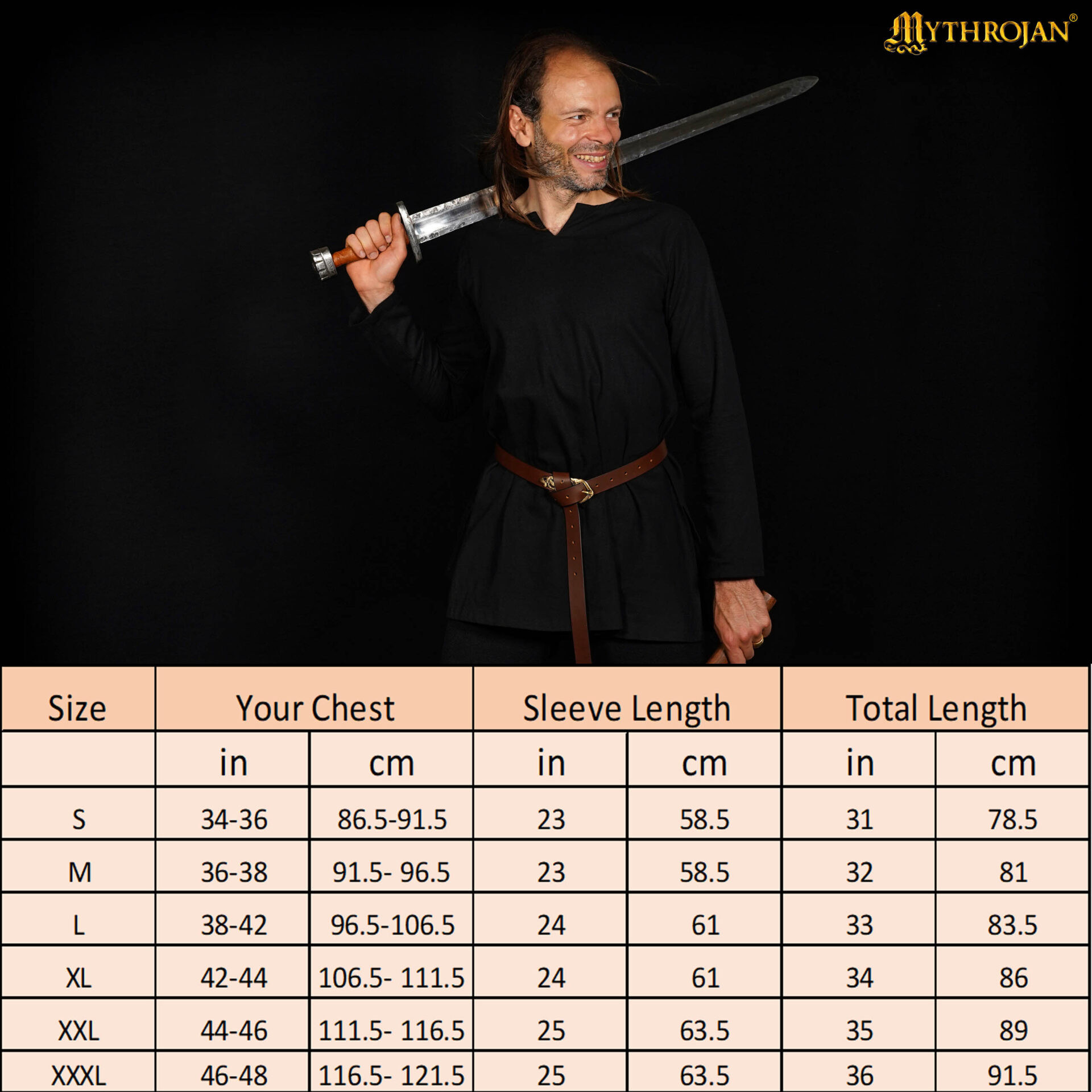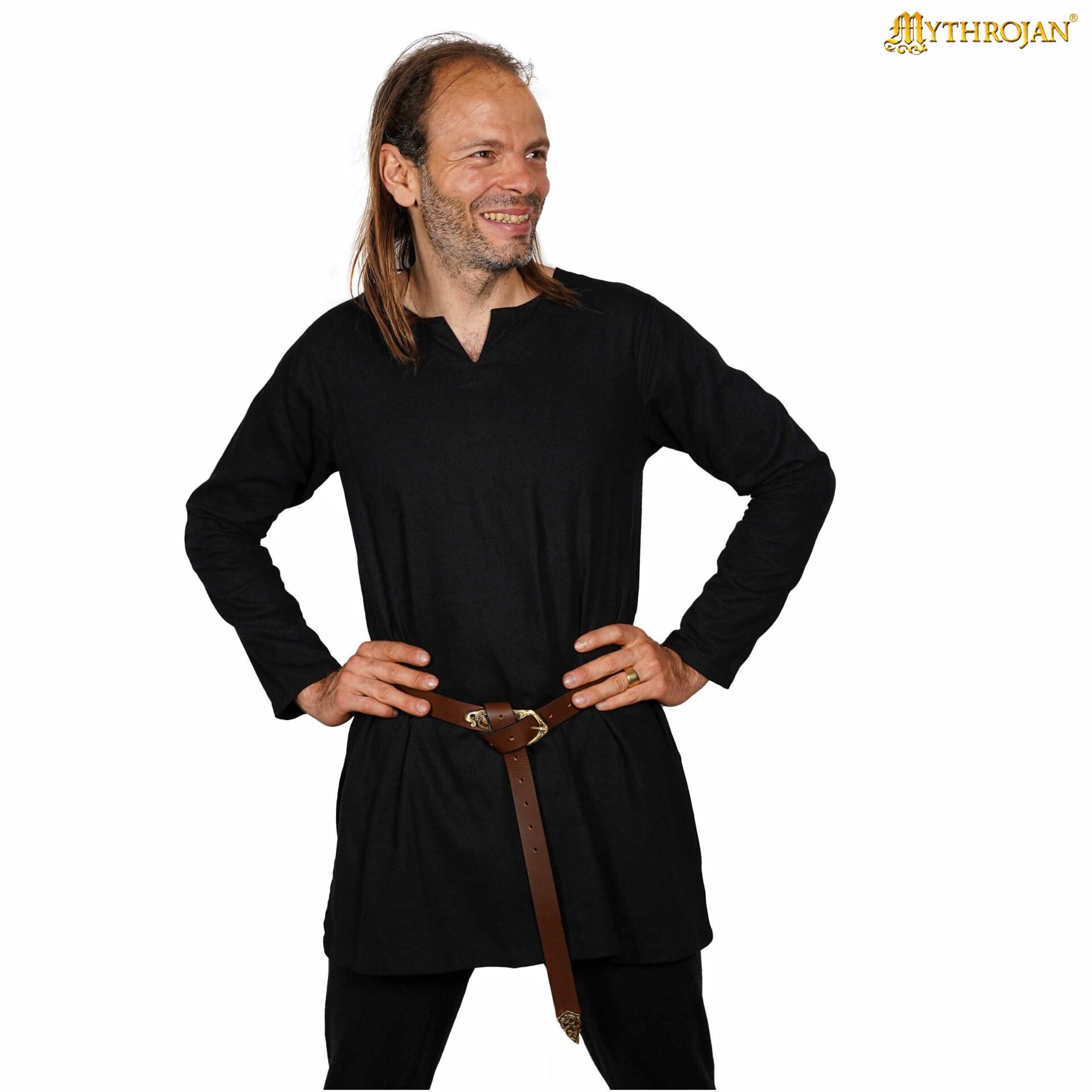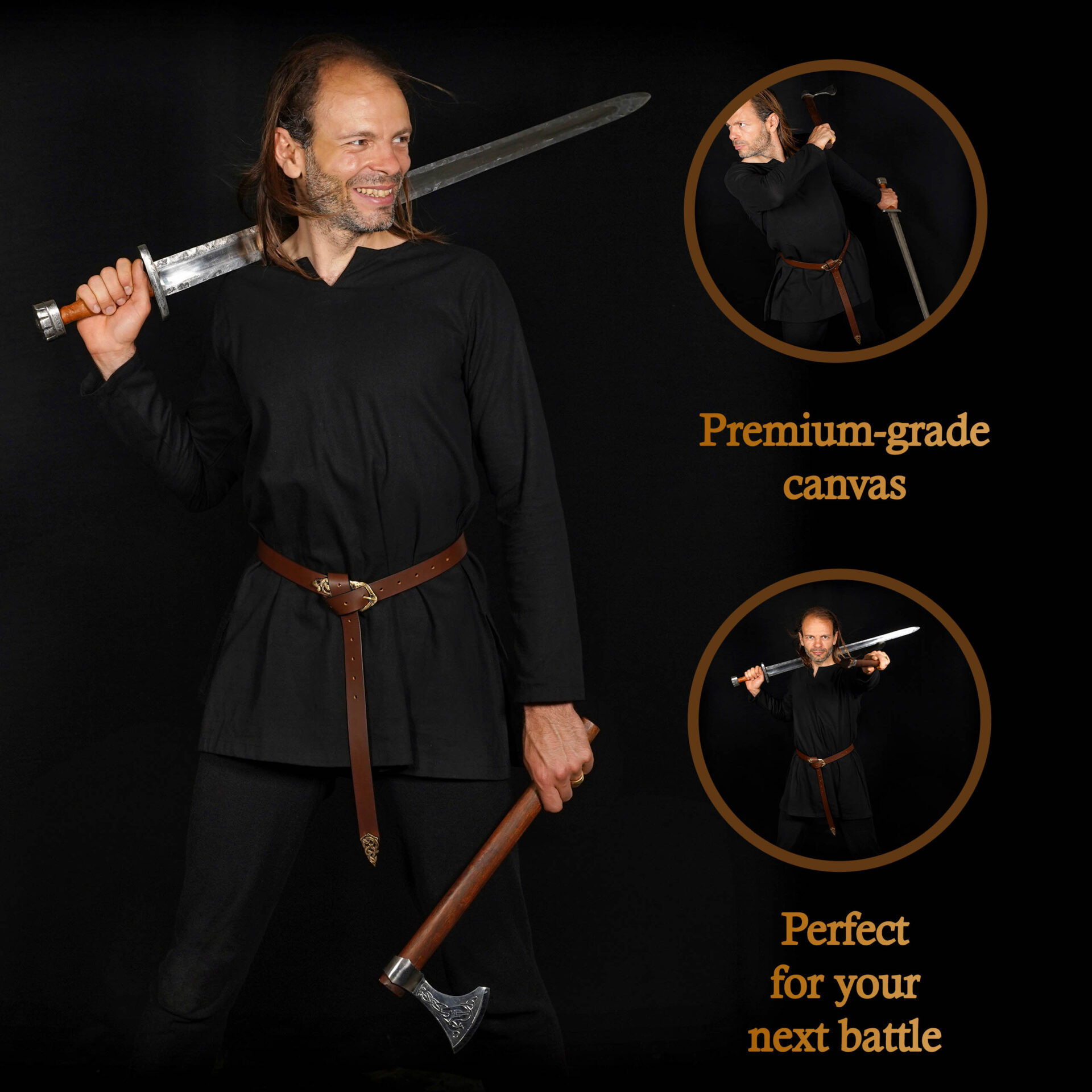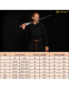 Pronto a rivivere l'epoca dei cavalieri e delle giostre con un tocco di autenticità? Questa tunica medievale di colore nero, ispirata al modello Raider, è la scelta perfetta per dare vita al tuo personaggio. Realizzata in resistente tessuto di cotone al 100%, garantisce durata e comfort in ogni avventura, sia in eventi della SCA, cosplay, matrimoni medievali o partite di LARP.