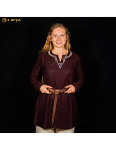 Richiesta su Tunica vichinga unisex in cotone con collo ricamato, colore marrone