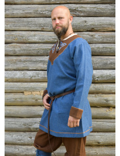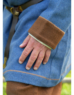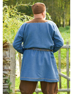 Progettata come indumento esterno, Esben può essere abbinata con una cintura in pelle marrone con fibbia e accessori metallici, completando un look coerente per mercati medievali, ricreazioni e incontri vichinghi. Se stai cercando di acquistare la Tunica Vikinga Esben in Lana Blu con Ricamo Celtico, troverai un'opzione che dà priorità a materiali naturali e finiture dettagliate.