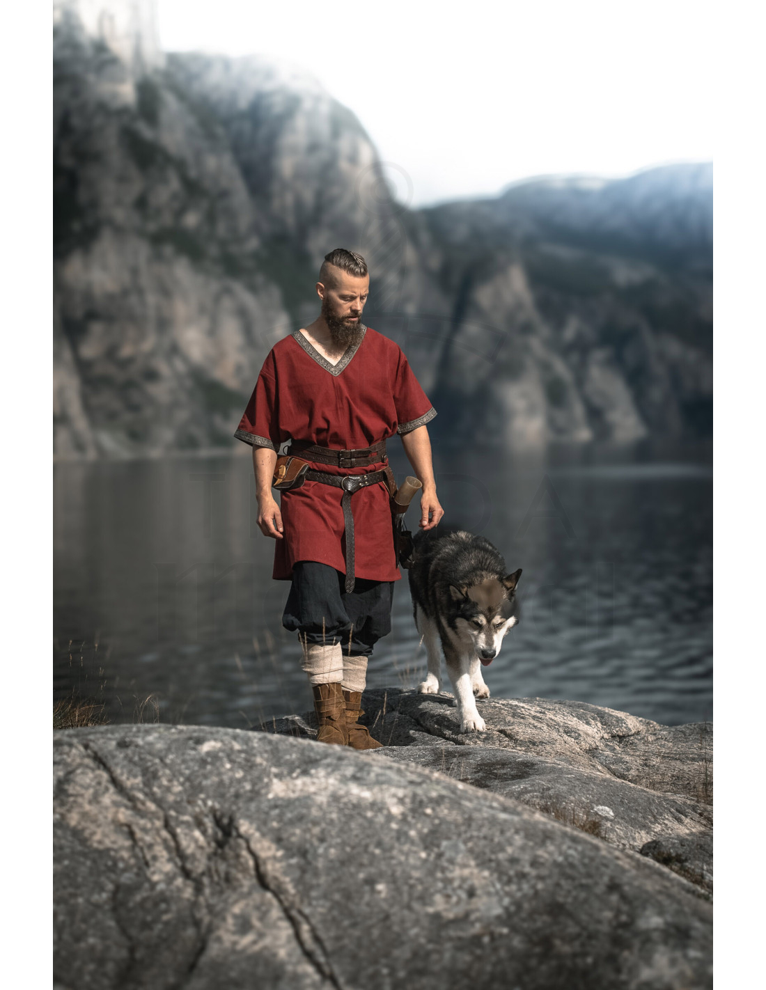 La Tunica corta vichinga modello Loki, colore Rosso ti offre questo e molto di più: un design pensato per farti muovere liberamente, mantenere il comfort per ore e sfoggiare un finish caratteristico. Le maniche corte e il collo a V facilitano la ventilazione e permettono di stratificare senza perdere stile, mentre i bordi decorativi aggiungono un dettaglio visibile che eleva qualsiasi outfit.