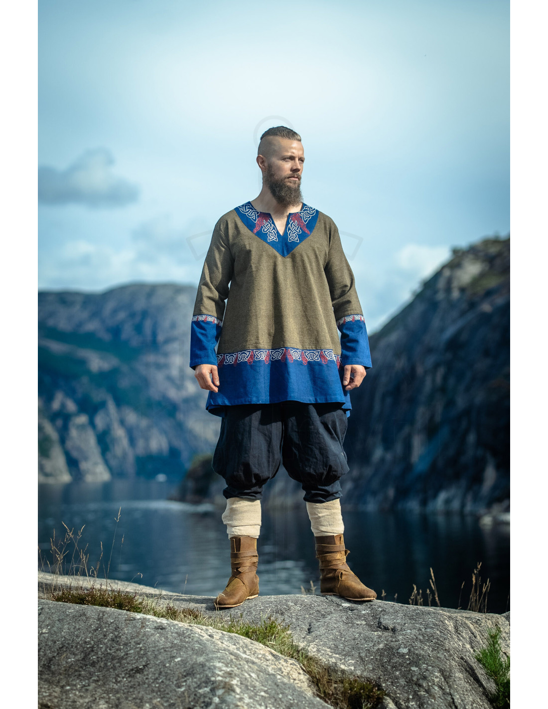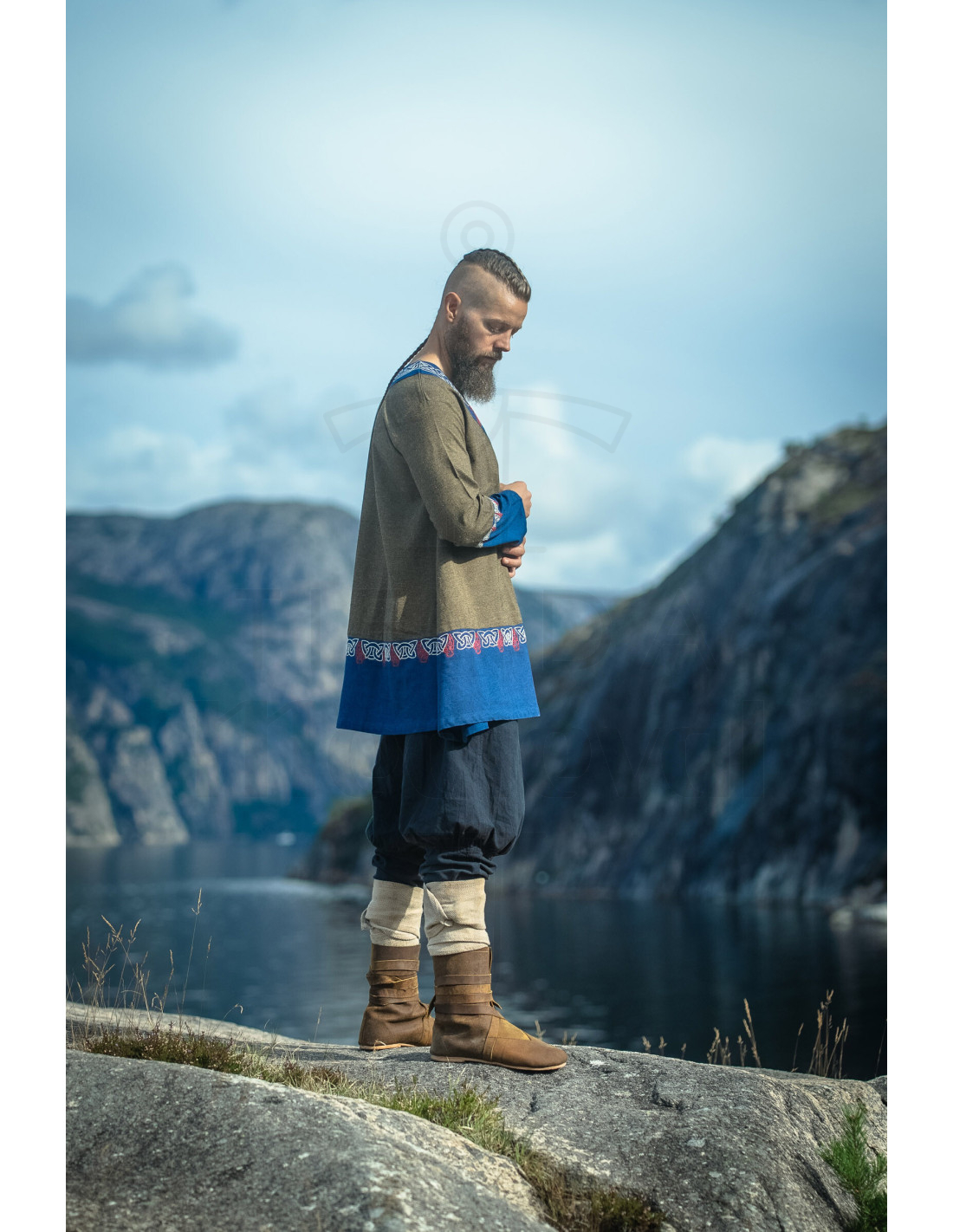 Tunica corta vichinga modello Freydis, colore oliva-blu