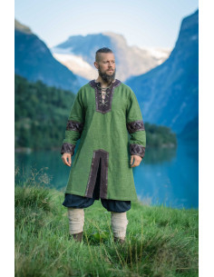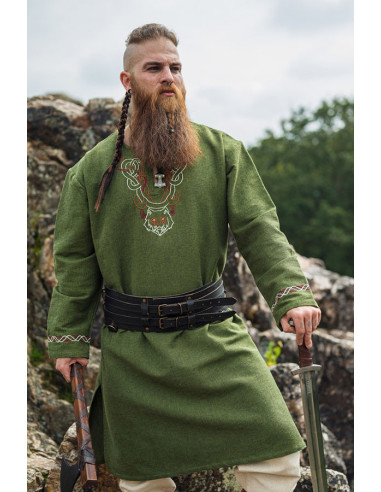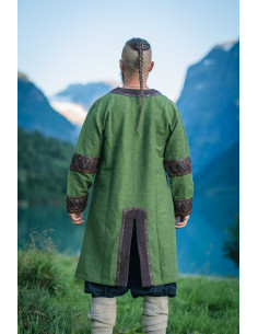 Tunika vichinga modello Leif, verde con dettagli in pelle genuina