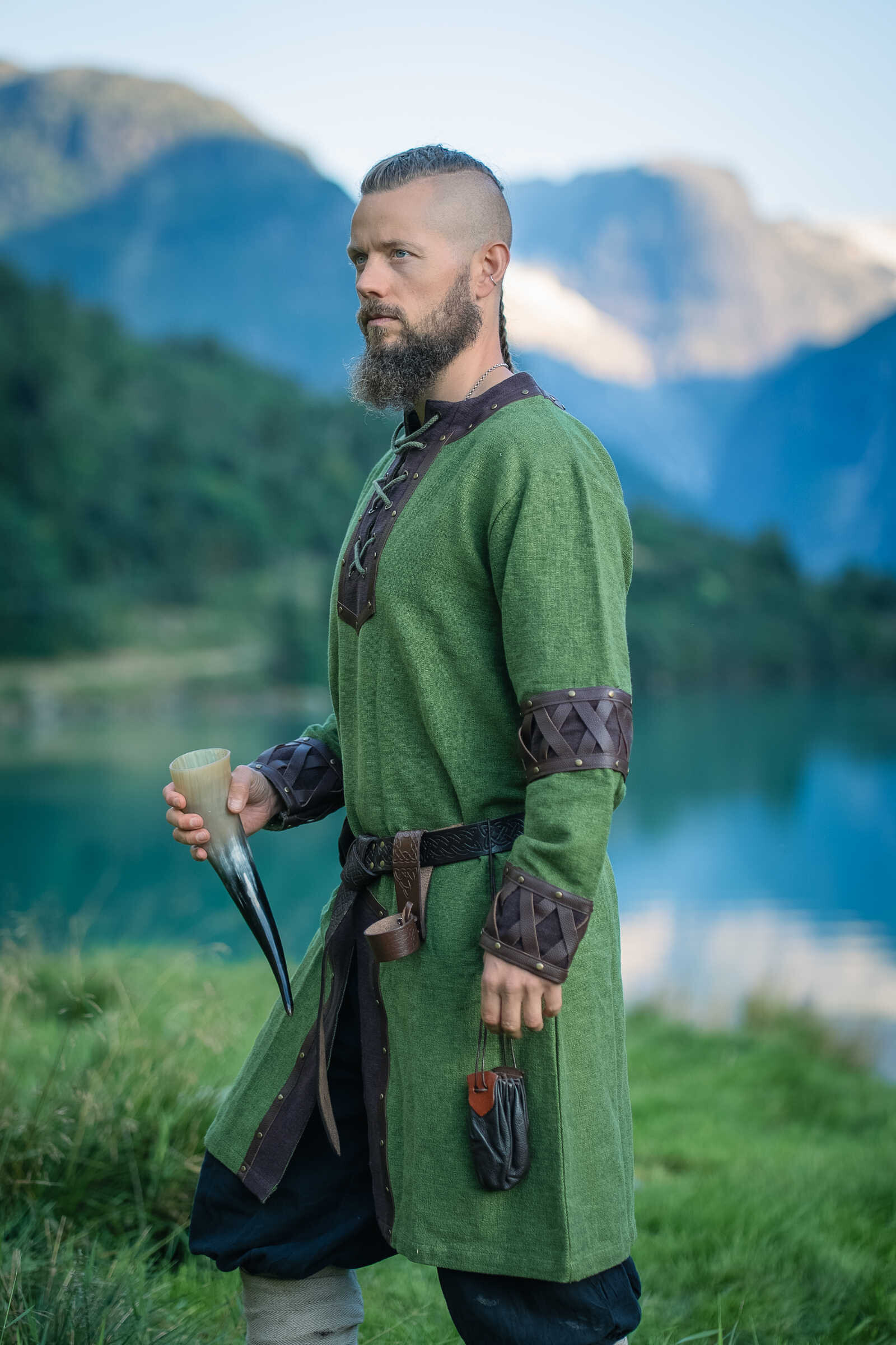 Se desideri acquistare la Tunika vichinga modello Leif, verde con dettagli in pelle genuina troverai in essa un compagno pratico e di stile, pronto a seguirti nei tuoi progetti e eventi. Osati indossare qualcosa che racconta una storia.