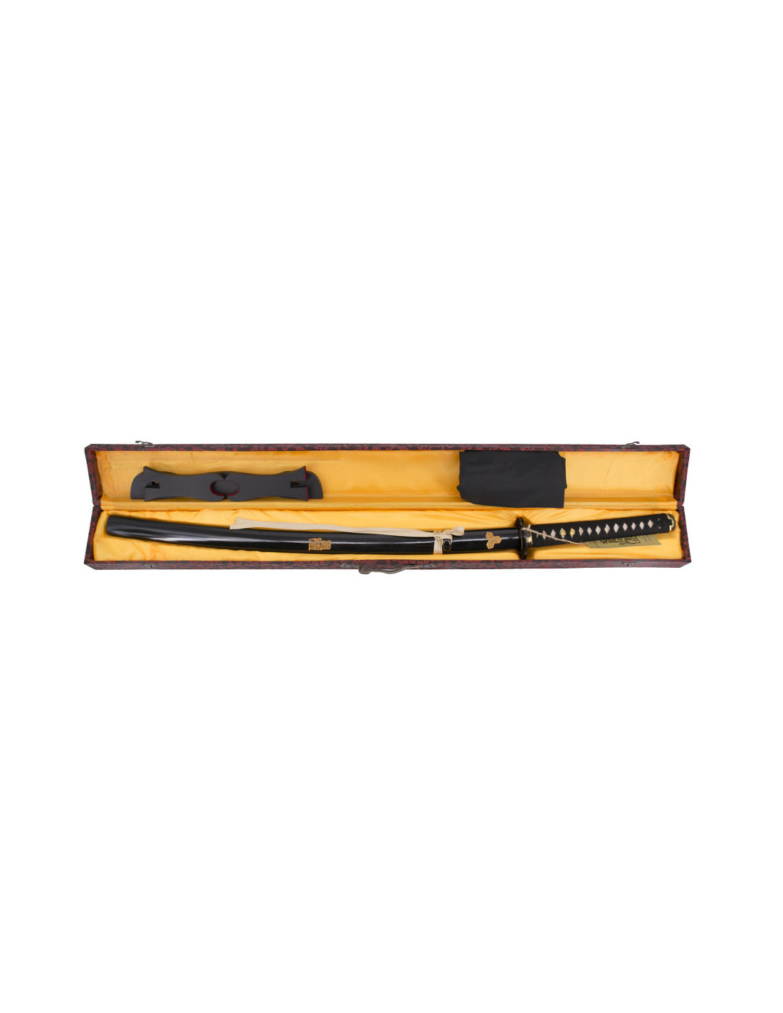La katana include tutto il necessario per esporre e mostrare questa magnifica base: un supporto da tavolo, fondina per il trasporto e un'elegante scatola di presentazione. Potrai mostrarla con orgoglio nella tua collezione o nel tuo angolo preferito.