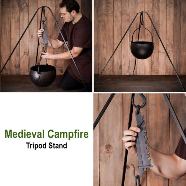 Il treppiede da falò medievale in ferro battuto di Lord of Battles è l'aggiunta perfetta alle tue avventure all'aria aperta. Questo treppiede è FORGIATO A MANO in FERRO resistente e ben progettato, garantendo prestazioni superiori e una durata eccezionale. Con una lunghezza di circa 150 cm, questo treppiede è ideale per riporre utensili da cucina di varie dimensioni.