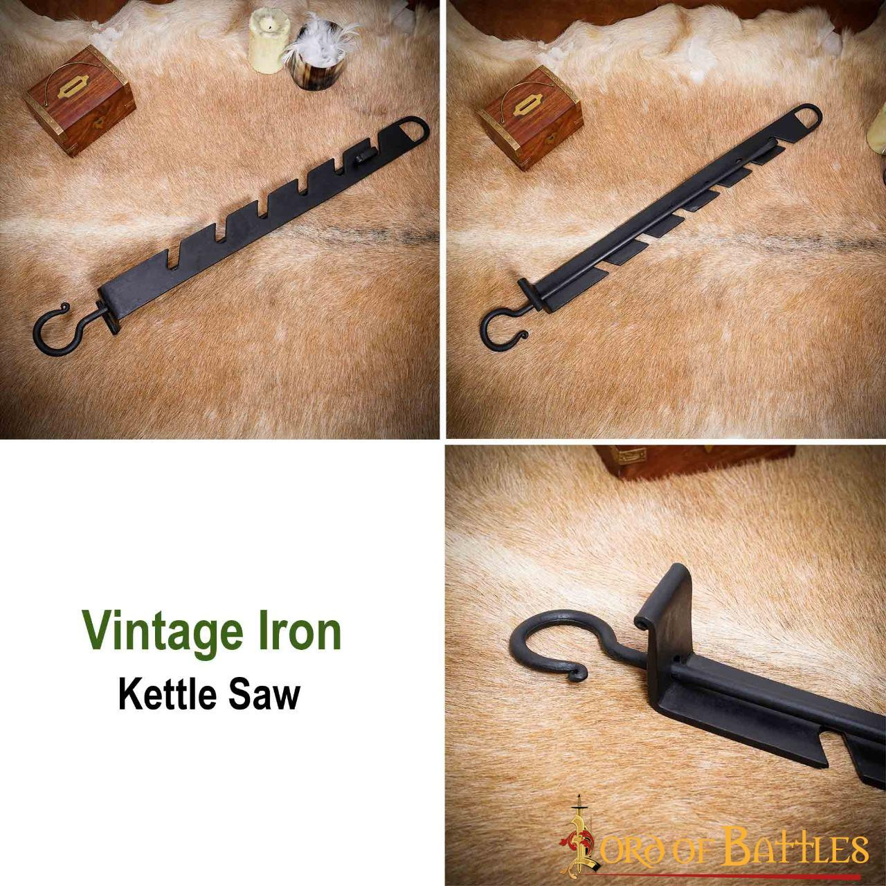 FORGIATO A MANO in ferro resistente, questo gancio per sega/utensili da cucina durerà per molti anni. La lunghezza totale della sua parte fissa è di circa 55 cm ed è regolabile fino a 98,5 cm, rendendo facile appendere le pentole a qualsiasi dimensione adatta.