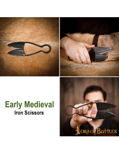 Queste forbici medievali in ferro forgiato a mano di 24 cm. Sono l'aggiunta perfetta a qualsiasi amante della storia e dell'artigianato autentico. Realizzate con materiali di alta qualità, queste forbici del marchio Lord of Battles sono un autentico gioiello medievale che si distingue per bellezza e funzionalità.