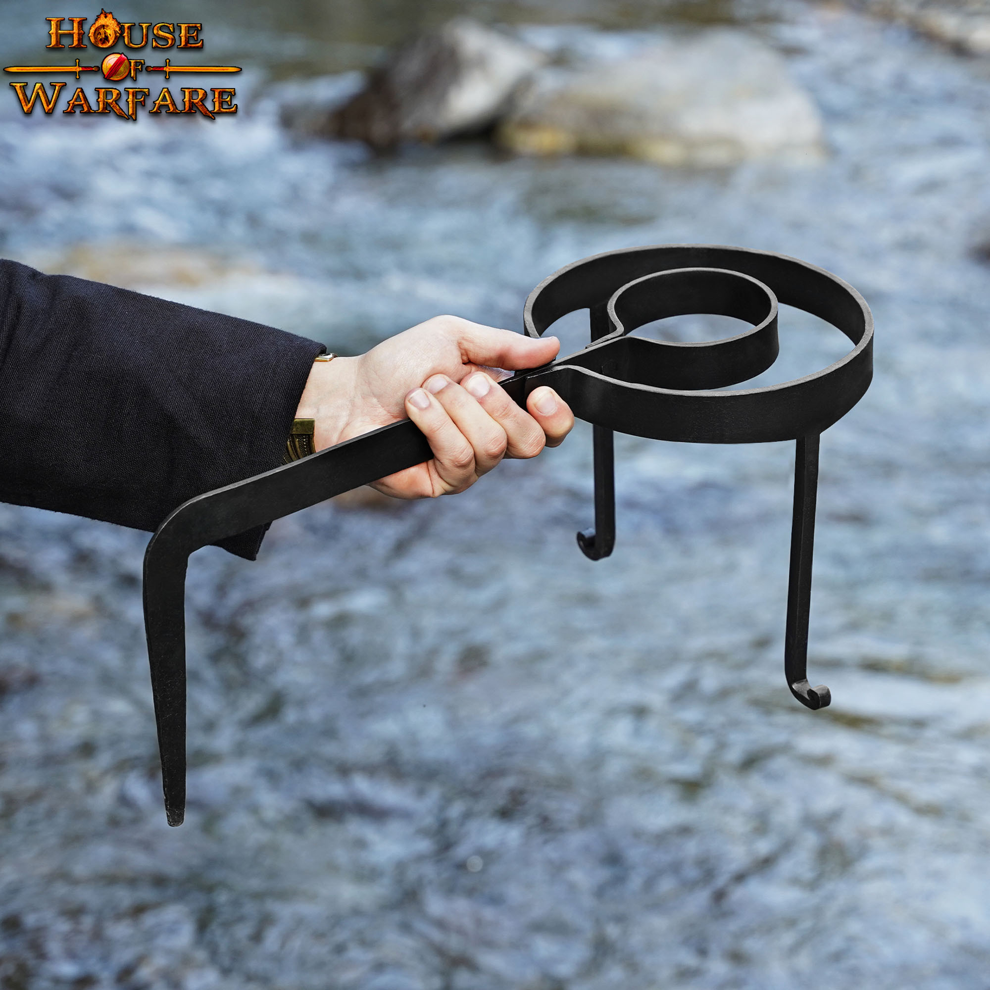 Scopri il gioiello della cucina medievale con questo treppiede in ferro battuto completamente funzionante e fatto a mano. Il treppiede da cucina medievale House of Warfare è l'accessorio perfetto per chi è appassionato di cucina storica.