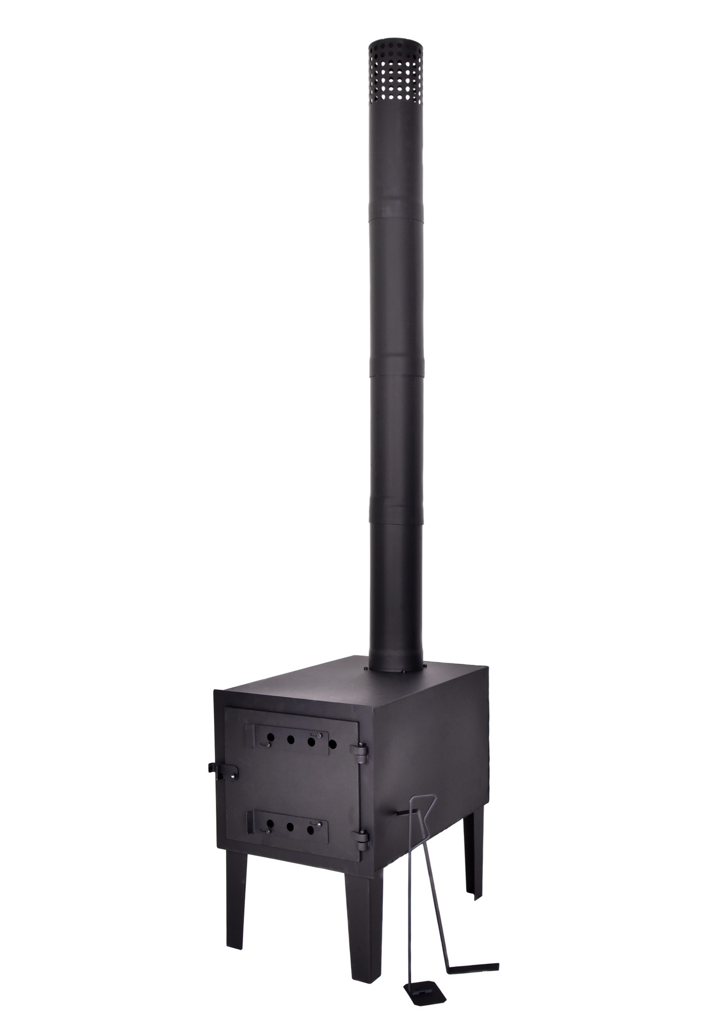 Questo fornello da tenda è ideale per l'uso in tende ignifughe con apertura, tipis, yurte o all'aperto e, soprattutto, il suo corpo può essere utilizzato per riscaldare il cibo. Inoltre, i componenti sono forniti nel focolare e tutti gli elementi necessari per il montaggio sono inclusi, come le prese per i tubi, l'estremità del tubo del fornello, le sezioni del tubo del fornello, le viti, l'attizzatoio e il rastrello per le braci. Prima del montaggio o del primo utilizzo, leggere attentamente le istruzioni per l'uso e non dimenticare di avere a portata di mano una chiave esagonale M6 (non inclusa nella fornitura).