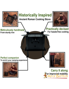 L'antica cucina romana e la griglia offrono un'esperienza autentica per gli appassionati e i rievocatori della vita romana. Ecco le caratteristiche di questo prodotto: