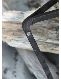 Inoltre, il suo formato compatto e pratico ne facilita il trasporto e lo stoccaggio, ideale per chi ama il campeggio, la vita nella natura o qualsiasi ambiente in cui il fuoco sia il centro di incontro. La finitura naturale del metallo, con sottili tracce del processo di forgiatura, conferisce un fascino rustico che si collega all'essenza di secoli passati, evocando la tradizione medievale di cucinare all'aperto.