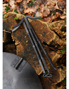 Realizzato a mano con ferro battuto, il suo design robusto e funzionale si combina con un aspetto semplice ma d'impatto, perfetto sia per ricostruzioni storiche che per momenti intimi nel tuo giardino. Le gambe smontabili non solo offrono stabilità sicura, ma facilitano anche il trasporto e lo stoccaggio, trasformando questo braciere in un alleato versatile per ogni avventura o evento.
