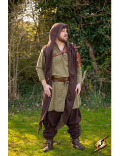 Che tu sia un avventuriero alla ricerca di tesori nascosti o un osservatore silenzioso, questo scialle diventa un elemento essenziale del tuo guardaroba. Il suo stile semplice e versatile si combina bene con una tunica verde chiaro e pantaloni marroni scuri, creando un look che evoca epoche passate e fantasie epiche. Con una cintura di pelle che tiene ferma la tunica e un accessorio pratico per portare i tuoi effetti personali, sarai pronto per qualsiasi sfida si presenti.