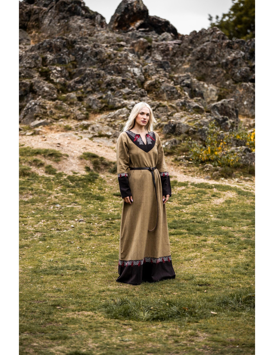 Se apprezzi i pezzi con storia, acquistando il Vestito Vikinga Donna modello Idun con Ricami, beige stai scegliendo un indumento che fonde estetica rustica e raffinatezza contemporanea, pensato per chi cerca autenticità nel proprio guardaroba.