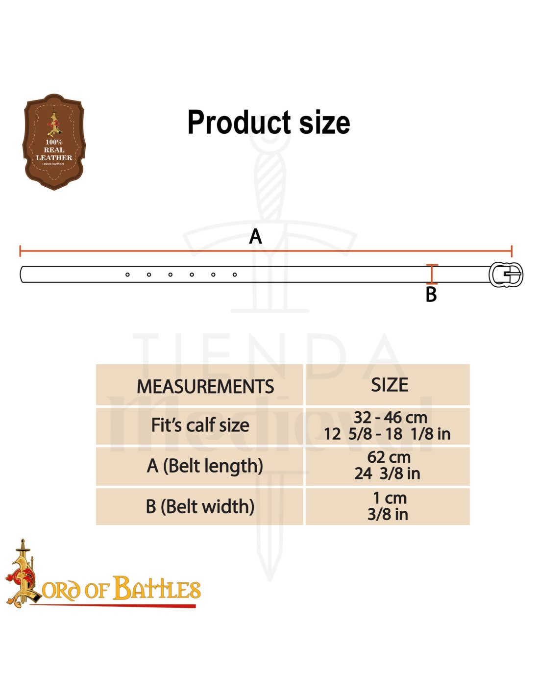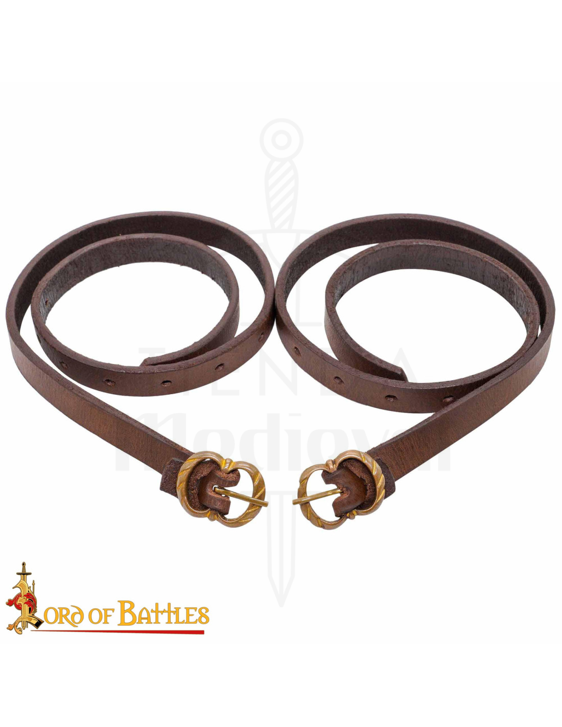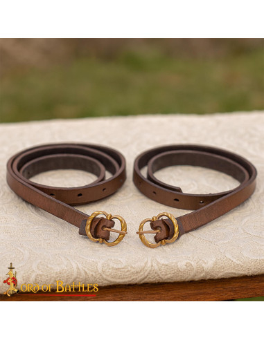 Se desideri acquistare Fascette medievali in pelle marrone per calzoni, questo paio fatto a mano offre esattamente questo, unione tra funzionalità e presenza storica. La pelle presenta una finitura opaca e pulita che esalta la venatura naturale, donando un aspetto curato e discreto che si abbina sia ai calzoni che a stivali o calze senza sottrarre protagonismo all'insieme.