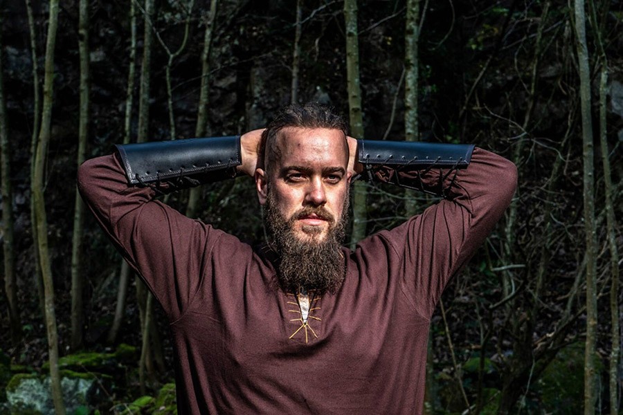 Tunica vichinga con ricamo Erwin, marrone scuro