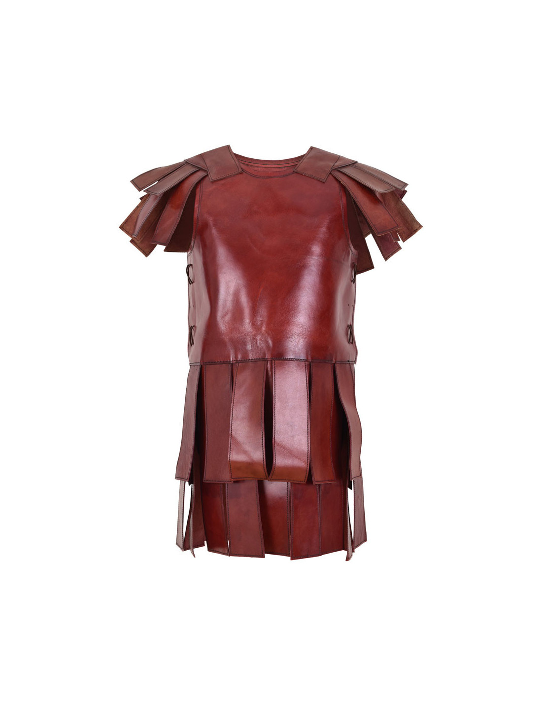 La Subarmalis romana in cuoio marrone-rossastro è l'accessorio perfetto per la tua armatura romana. Progettata per essere indossata come un gambeson sotto le armature loriche hamatte o segmentate, questa Subarmalia ti offrirà una protezione aggiuntiva senza compromettere la tua mobilità.